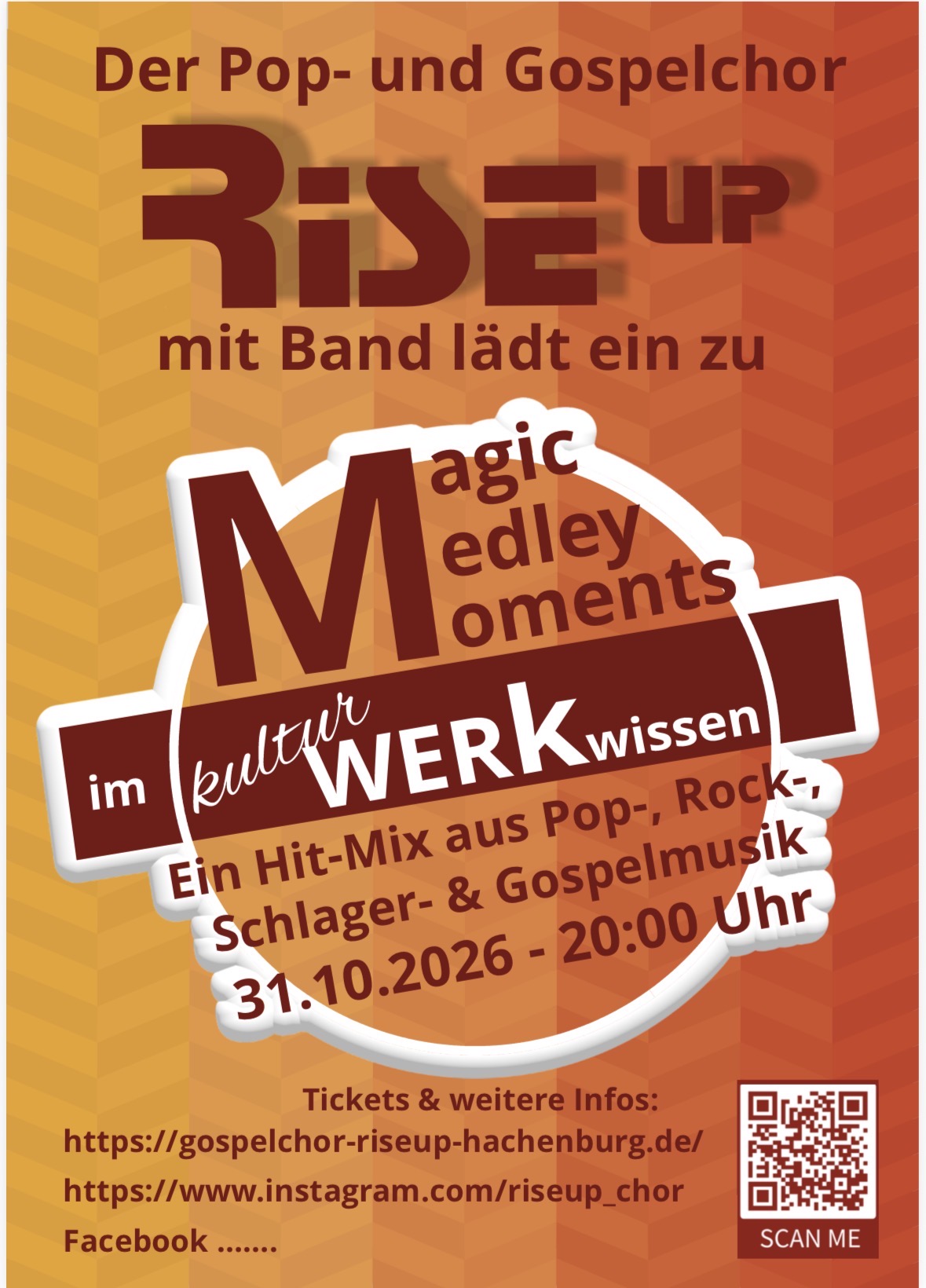 Wir freuen uns auf schöne Proben, um euch ein tolles Event am 31.10.2026 im KulturWerk in Wissen zu präsentieren.